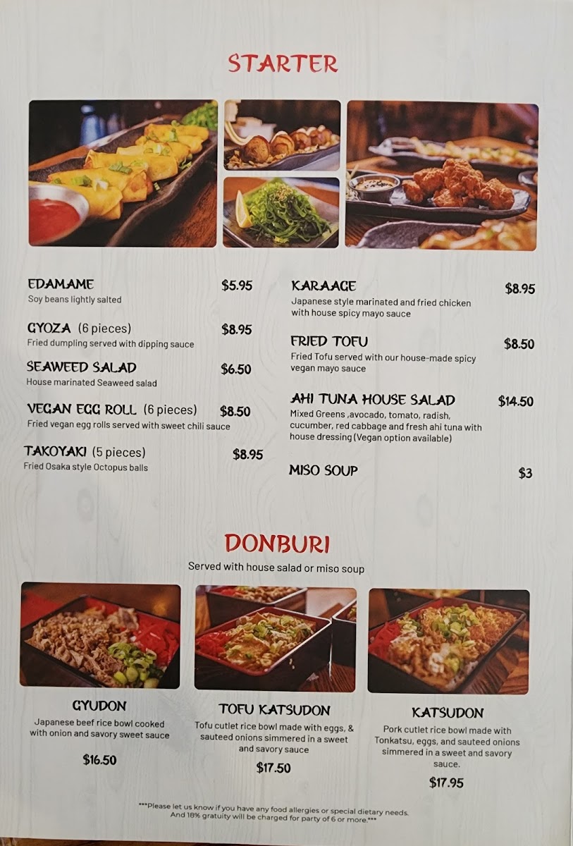 At The Kazoku, located at 2939 17th Ave, Longmont, CO 80503, diners are treated to an inviting menu that blends traditional Japanese cuisine with vegan-friendly options, making it a great choice for families. The diverse offerings are sure to please all types of palates. For those seeking classic Japanese fare, highlights include Teriyaki Chicken at $15.99 and Salmon Teriyaki at $17.99, each expertly grilled and served with sides that elevate the dish. Vegans can enjoy hearty meals like the Vegan Ramen for $13.99, a flavorful noodle soup packed with vegetables and a rich broth that satisfies both taste and nutrition.